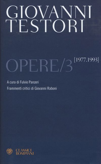 Il terzo volume delle Opere di Giovanni Testori è dedicato al periodo che va dal 1978 al 1993 e fa il punto su tutta la produzione degli anni Ottanta, dalla "Conversazione con la morte" ai "Tre Lai". La sorpresa principale del volume è rappresentata dalla poesia inedita, soprattutto da quella "familiare" o ripresa dalle riviste e dai cataloghi d'arte, nonché dalla pubblicazione delle due "Brianciatrilogie" con l'inedito Verbo, rappresentato ma mai pubblicato, e la seconda versione dell'Erodiade. Frammenti critici di Giovanni Raboni.