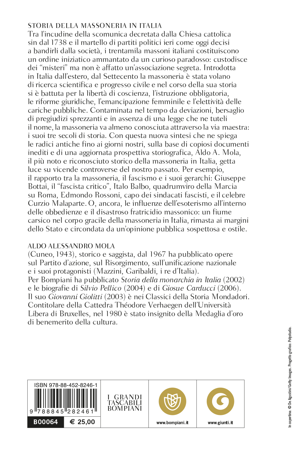 Tra l'incudine della scomunica decretata dalla Chiesa cattolica sin dal 1738 e il martello di partiti politici ieri come oggi decisi a bandirli dalla società, i trentamila massoni italiani costituiscono un ordine iniziatico ammantato da un curioso paradosso: custodisce dei ''misteri'' ma non è affatto un'associazione segreta. Introdotta in Italia dall'estero, dal Settecento la massoneria è stata volano di ricerca scientifica e di progresso civile, e nel corso della sua storia si è battuta per la libertà di coscienza, l'istruzione obbligatoria, le riforme giuridiche, l'emancipazione femminile e l'elettività delle cariche pubbliche. Contaminata nel tempo da deviazioni, bersaglio di pregiudizi sprezzanti e in assenza di una legge che ne tuteli il nome, la massoneria va almeno conosciuta attraverso la via maestra: i suoi tre secoli di storia. Attraverso questa nuova sintesi che ne spiega le radici antiche fino alle vicende dei giorni nostri e sulla base di copiosi documenti inediti e di una aggiornata prospettiva storiografica, Aldo A. Mola, il più noto e riconosciuto storico della massoneria in Italia, getta una luce su vicende controverse del nostro passato. Tra gli altri, il rapporto tra la massoneria e il fascismo e i suoi gerarchi: Giuseppe Bottai, il ''fascista critico'', Italo Balbo, quadrumviro della Marcia su Roma, Edmondo Rossoni, capo dei sindacati fascisti, e il celebre Curzio Malaparte. Oppure sulle influenze dell'esoterismo all'interno delle obbedienze, e sul disastroso fratricidio massonico, un fiume carsico nel corpo gracile della massoneria in Italia, rimasta ai margini dello Stato e circondata da un'opinione pubblica sospettosa e ostile.