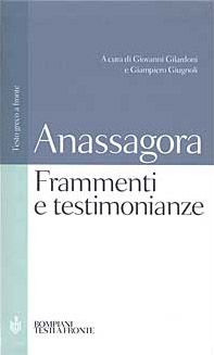 Il volume propone una ipotesi di successione dei frammenti che restituisca il possibile percorso speculativo compiuto da Anassagora alla ricerca dell'intelletto come principio regolativo distinguibile dalle cose, ma da esso non separato. Il testo seguito è quello edito da Diels-Kranz (Hildesheim 1985), integrato, per le testimonianze, da brani desunti dall'edizione curata da Diego Lanza (Firenze 1966) e sempre opportunamente segnalati da asterischi.